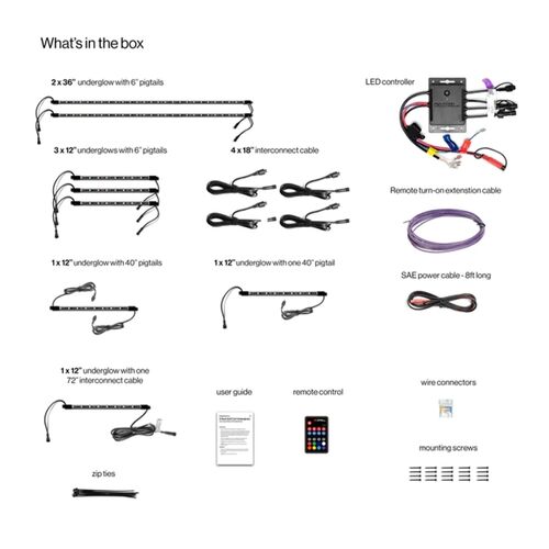 - 36in underglow LED strips with 6in pigtails (2pcs)