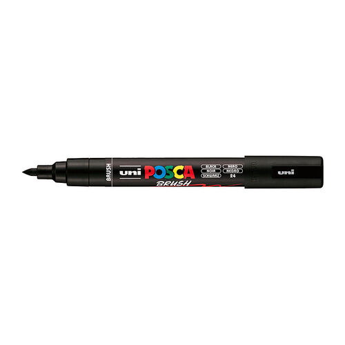 Posca Medium Brush Tip Black semi-flexible tip provides both control and spontaneity. The perfect tool to layer, colour and detail. The seamlessly flowing water based pigment gives you the precision to create fine to thicker lines. 1-4mm line.