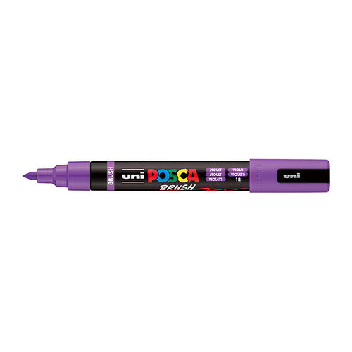 Posca Medium Brush Tip Violet semi-flexible tip provides both control and spontaneity. The perfect tool to layer, colour and detail. The seamlessly flowing water based pigment gives you the precision to create fine to thicker lines. 1-4mm line.