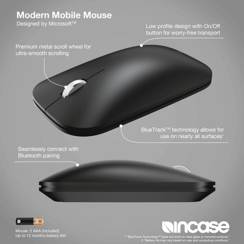 FeaturesMade for the movements of every day the Modern Mobile Mouse Designed by Microsoft is lightweight low-profile and designed to quickly connect. Compact and without the bulk of a traditional mouse it offers several colorways to match your setup.