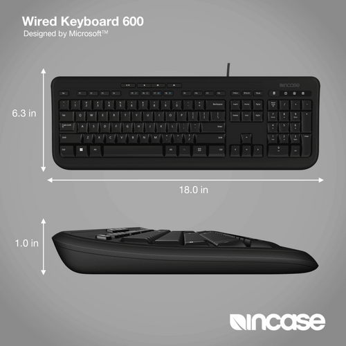 FeaturesConsidered efficiency at its core. The Wired Keyboard 600 Designed by Microsoft features quiet-touch keys plus quick access to media controls with shortcut keys and a full number pad. Designed by Microsoft